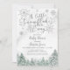 Caligrafia adorável com flocos de neve, convites para duches de bebês com tema de inverno. Fácil de personalizar com seus detalhes. Marque a coleção para localizar itens correspondentes como placas de gabinete.