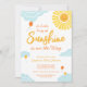 Um pequeno raio de sol está a caminho! Planeje um chá de fraldas divertido e neutro com este convite colorido para chás de fraldas, com uma ilustração de um sol, nuvens e balões!