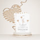 O convite para o chá de fraldas doce apresenta um belo coelho com balões cardíacos e o texto "um pouco de amor está a caminho", perfeito para um aniversário de fevereiro ou Namorados, mas também adorável para qualquer época do ano! O script de tendência e os elementos de aquarela cor-de-rosa e neutra adicionam um estilo moderno à placa de chá de fraldas bonito, e a parte de trás é um padrão cardíaco chic.