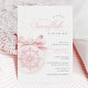 Celebre a chegada da sua garotinha com o nosso convite "A Little Snowflake Pink Chá de fraldas". Com um delicado floco de neve cor-de-água rosa, dentro a Enfeites de natal, este design é lindamente adornado com um arco cor-de-rosa coquetel para um charme suave e do inverno. A letra elegante do script adiciona um toque clássico, mostrando a frase "Um pequeno floco de neve está a caminho." Perfeito para um chá de fraldas de inverno, este convite combina elementos festivos com detalhes femininos, fazer ideal para a celebração especial de uma menina.