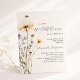 Um fundo branco. Decorado com abelhas e pintado flores silvestres em violeta e rosa. Personalize e adicione um nome e detalhes da parte. 1 folha = 1 convite impresso de borda a borda.