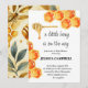 Este é um convite de chá de bebê lindamente projetado com um tema de mel. O cartão apresenta ilustrações elegantes em aquarela de favos de mel, mel dourado pingando de um mergulhador e tons quentes de laranja e amarelo, criando uma sensação aconchegante e convidativa. O texto é estilizado em uma combinação de caligrafia moderna e fontes serifadas clássicas, tornando o convite encantador e sofisticado. A mensagem "Um pouco de mel está a caminho" adiciona um toque doce e divertido, perfeito para celebrar um bebê que está por vir.