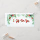 (NOTA: esta é uma placa única que deve ser incluída no envelope com dinheiro ou para a qual você pode gravar um cartão-presente ou um certificado-presente. Não é um cartão de saudação dobrado.) Faça suas férias muito felizes! Direitos autorais da coletânea de design Laurie Bethard, DBA My Blue Skye. Economize no preço de venda atual com o transporte gratuito do Zazzle Plus. Compre com confiança usando sua escolha de vários métodos de pagamento confiáveis. A remessa internacional dos EUA para a maioria dos itens está disponível. Você é convidado a seguir e/ou marcar nossa página inicial da loja para que não perca nenhum de nossos novos itens. Obrigado por comprar, e tenha um Natal muito feliz!