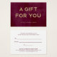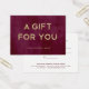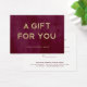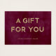 Estes na moda, ricos certificados de presentes coloridos de burgundy apresentam elegante ouro falso, tipografia moderna minimalista que diz "Um presente para você". A parte de trás contém bastante espaço para você se personalizar totalmente com suas informações de loja ou de empresa.