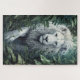 Uma pintura a tinta de um grande leão branco como quebra-cabeça, arte parcial A.I