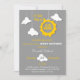Este convite moderno e colorido é ideal comemorar um chá de fraldas com uma luz do sol, "você é minha luz do sol", "minha pouca luz do sol" ou "um raio tema da luz do sol pequeno". Caracteriza um sol cortado com as nuvens bonitos que penduram da parte superior em um fundo cinzento. Este design é grande para o verão e durante todo o ano. Design unisex. Design colorido e brincalhão que uma mamã chique apreciará.