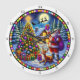 Este é um design gráfico festivo, de estrutura circular, com um tema de artesanato e feriado. A imagem central apresenta um par de luvas tricotadas penduradas num arco vermelho, com um cartaz de madeira entre elas que diz "Feliz Natal". As mitenes e os sinais estão rodeados de peles coloridas de fios e de luzes festivas de Natal. A design é fechada numa armação circular de madeira com borda decorativa. A estética geral é acolhedora e acolhedora, fazer perfeita para tricistas, artesãos, e qualquer um que ama uma sensação quente de feriado feito à mão.