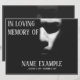 Um rosto dormindo em meia sombra. ... para Funeral e Bereavements tem um design escuro moderno e elegante. Os nomes, texto e data podem ser personalizados no modelo. Projetado por pASob-design.