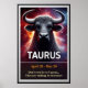 ・ Um touro Taurus em greve contra um pano de fundo de galáxia cósmica, perfeito para amantes da astrologia. ・ Os pedidos e/ou as perguntas são encorajados e apreciados. ・ A imagem foi reproduzida em 300 ppi para a qualidade máxima do impressão.