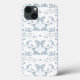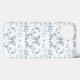 O design apresenta um padrão simétrico que inclui borboletas, designs florais e formas cardíacas em tons de azul sobre um fundo branco. Este tipo de design é esteticamente agradável e pode ser usado para papel de parede ou tecido.