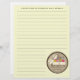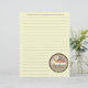 Receba papel com linhas opcionais, que podem ser removidas. Em baixo está uma ilustração de uma dúzia de macarões franceses coloridos em uma caixa de presentes bege com uma delicada fita marrom. Personalize com seu nome em ilustração. Também personalize o texto no topo.