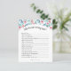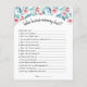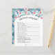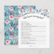 Uma folha de papel com o jogo "Quem conhece melhor a mamãe?" para um chá de fraldas, decorada com adoráveis pinturas aquáticas de plantas com esmeraldas macios e folhas azuis, galhos e rosas cor-de-rosa macia.