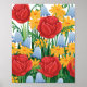 Uma ilustração brilhante das Flores Poster- Flores é a essência-chave da natureza. Isto é para todos os amantes florais e jardineiros! A arte é uma ilustração brilhante e vibrante das flores vermelha, azul e amarela.