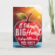 Uma maçã vermelha grande leva um grande cartão de