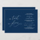 Este é um cartão de Anúncio de Casamento Adiado, com título do cartão, uma mudança nos planos, em tema de caligrafia Azul Marinho romântico, elegante e sofisticado.