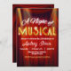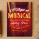 Este convite tem cortinas como fundo para dar a design de um teatro. A inscrição da Broadway foi projetada com lâmpadas nela para uma aparência mais estilo Broadway