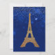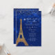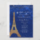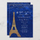 Elegante Paris temeu o Sweet 16 Birthday Invitation, feito em fundo azul com estrelas como faíscas, confete de ouro e uma torre Eiffel com aspecto dourado. Personalize o texto branco personalizado, para a comemoração de 16 anos da sua filha. Produtos correspondentes disponíveis.