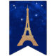 Bandeira temático chique da estamenha de Paris com cada bandeira feita em um azul escuro, com sparkles e estrelas. O texto gráfico do brilho Dourado soletra para fora UMA NOITE EM PARIS, com uma torre Eiffel do brilho do ouro que toma o lugar do convite de festas e das fontes temáticos de A. Matching Doce 16 Paris da letra disponíveis.