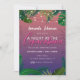 Cartão de Convite Sunset para uma Noite em Copacabana (Havana) com Folhas Tropicais e Luzes de Cordas.