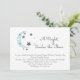 Design doce e simples do convite que caracteriza uma lua azul pálido e estrelas em várias máscaras do cinza. O título do roteiro "uma noite sob as estrelas" é parte do design e não pode ser mudado. Personalize a disposição editando a outra cor do texto, da pia batismal e da tinta. Este design é perfeito para toda a ocasião, incluindo o baile de formatura do segundo grau, os partidos de comensal, os jantares de ensaio, e os casamentos.