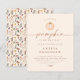 Dê as boas-vindas a uma doce menina com este adorável convite econômico para chá de bebê com tema de abóbora! Este charmoso design apresenta um fundo bege suave com a frase “Uma pequena abóbora está a caminho” em uma fonte manuscrita divertida, com floreios delicados. Abaixo, o nome da futura mamãe está em negrito e letras maiúsculas, e os detalhes do evento são impressos em itálico delicado e elegante. Na parte inferior, há um lindo raminho de flores silvestres. O verso do cartão é igualmente fofo, com um padrão de folhas de outono e flores silvestres em tons terrosos neutros. Este convite é perfeito para temas de outono, para celebrações rústicas, ao ar livre, inspiradas na natureza ou aconchegantes. Edite facilmente a maior parte do texto para combinar com o seu evento! Como parte da seleção econômica da Zazzle, esta folha não vem em tamanhos padrão de cartão. Para obter este design em um cartão padrão, você pode encontrá-lo na coleção ou usar a Zazzle Make Machine para transfer