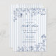 Convide formalmente os convidados para o seu chá de panela "algo azul" com o nosso cartão de convite luxo com listras de periwinkle clássicas e flores de marinho.