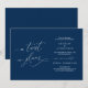 Este é um cartão de Anúncio de Casamento Adiado, com título do cartão, uma reviravolta nos planos, em tema de caligrafia Azul Naval romântico, elegante e sofisticado.