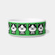 Uma tigela de beber ou comer de gatos fofa. Cor verde. Ilustrações fofas de gatos. Perfeita para o seu amigo peludo.