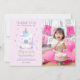 Cartões de agradecimentos de festa de aniversário de tema de unicórnio mágico. Obrigado os hóspedes para celebrar o dia especial do seu filho! Adicione sua própria foto de aniversário do seu filho. Projetado com rosa e ouro. Os textos são facilmente editáveis on-line. Ilustração e design do Namibear Art Studio. ©Namibear