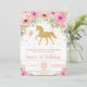 Personalize este Convite de aniversário branco do Unicórnio Floral Cor-de-Rosa e do Fada com os detalhes do seu partido de forma fácil e rápida, basta pressionar o botão personalizá-lo para reorganizar e formatar ainda mais o estilo e o posicionamento do texto.Itens correspondentes disponíveis! c) O Feliz Cat Studio