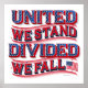 Unidos, Divididos Nós Caímos Poster que ilustra a tipografia 3D, estrelas atiradoras e temas patrióticos que representam a unidade e a paz dos EUA entre as diferenças nas nossas culturas e opiniões políticas. É também uma recordação que a única forma de cair é dentro de nós. Isto pode ser um presente para os Aniversários, ou para qualquer dia para um amigo ou família. Criado com uma letra e ilustração desenhadas para aqueles que adoram Estilos Únicos e Novidade! Desenhado por Katrina Sutton.