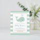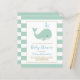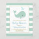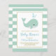 Este doce convite de "drive-by-chá de fraldas" neutro em gênero apresenta uma linda baleia verde-menta esculpindo gotas de água azul. As palavras "Chá de fraldas" e o nome personalizável da futura mãe aparecem na letra azul de escrita manual correspondente. Além da falso estrutura retangular em ouro, há um fundo de listras verdes e brancas da casa da moeda.