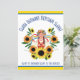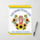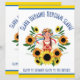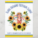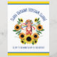 Cartões de saudação quadrados coloridos com formato quadrado, com estilo central de arte popular, garota ucraniana em fantasia tradicional com grande coroa de girassóis e saudação nacional "Glória à Ucrânia! Glória a Heroes!" em inglês e ucraniano. Bordas coloridas de bandeira azul e amarela da Ucrânia