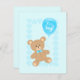 É um menino! Convite de chá de fraldas azul / anúncio de um bebê com ilustração fofa de um ursinho de pelúcia segurando um balão azul. Personalize-o com suas próprias informações ou clique em "Personalizá-lo" se precisar alterar o layout, as cores ou o tamanho do convite.