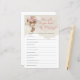 Você está pronto para um chá de fraldas excitante cheio de aventura e diversão? Mergulhe no cartão de jogo "Teddy Bear Pink How Good Know The", especialmente projetado para o tema "We Can Barly Wait", perfeito para um chá de fraldas feminino. Este cartão de jogo irá desafiar seu conhecimento sobre as mamães a serem e adicionar um toque lúdico à celebração. Prepare-se para uma jornada de descoberta e riso enquanto testa sua compreensão do convidado de honra! Este jogo fará certamente do chá de fraldas uma experiência inesquecível para todos os envolvidos. Contacte-me para obter itens correspondentes ou para personalização, Rosas embebidos ©