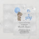 Para um chá de fraldas celebrando um menino. Um fundo metálico falso prateado. Um ursinho de pelúcia segurando estrelas de balões azuis e poeira brilhante fraca. Personalize e adicione o nome da mãe a ser e os detalhes da festa. O nome e o texto: É um Rapaz! são escritos com um estilo escrito à mão