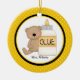 Pegue o presente perfeito para aquele professor maravilhoso que você conhece! Pode ser no Natal ou só porque ela dá esse toque especial. Tem um fundo amarelo com bolinhas branca pequena. No centro há um urso segurando uma grande garrafa de cola onde você pode personalizar este adorável ornamento com o nome do professor. Ela/Ele se lembrará do seu filho por muitos, muitos anos. Veja os muitos outros designs e cores também disponíveis.