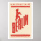 Urso de Berlim Impressão de Rótulo de Caixa de Fósforos – Cartaz Duotone Alemão Vintage, Arte de Parede de Meados do Século, Design de Tipografia Vermelha 1