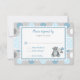 Este cartão RSVP de chá de fraldas giro para um menino apresenta um doce ursinho de pelúcia segurando balões com fundo bolinhas em azul e cinza. O design traseiro é uma faixa azul e branca que corresponde à frente. Todo o texto é editável para que você possa personalizar este design para suas necessidades exclusivas.