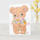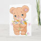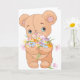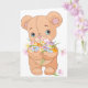 Um design de um ursinho de pelúcia com um buquê de flores. O ursinho de pelúcia parece tão fofo e adorável e as flores têm algumas boas cores. Esta design é adorável. Este ursinho segurando um design buquê parece excelente nestes cartões