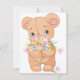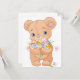 Um design de um ursinho de pelúcia com um buquê de flores. O ursinho de pelúcia parece tão fofo e adorável e as flores têm algumas boas cores. Esta design é adorável. Este ursinho segurando um design buquê parece excelente nestes convites