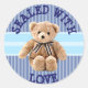Chá de fraldas, Aniversário ou Anúncio de Nascimento Urso de Teddy "selado com amor" Pau azul e bronzeado.