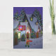 Um urso de ursinho feliz aprecia as vistas do Natal em sua cidade enquanto traz um presente a um amado.
