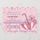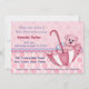 Doce menina convite para chá com adorável ursinho rosa cavalgando em um guarda-chuva, pontos grandes e outros toques especiais. Personalize com suas informações.