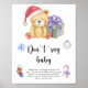 "Há um bebê Beary Sweet a caminho". Celebrar com esta festa de chá de fraldas do ursinho de pelúcia! Ursinho de pelúcia bonitinho com presente de natal, com chapéu de Santa. No verso do cartão estão os padrões de natal de feriado (cana doce, brinquedo de árvore de natal, meias de natal). Itens correspondentes disponíveis.