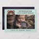 Anuncie seu bebê bonitinho com este pálido cartão de anúncio de nascimento verde-azul personalizado com uma foto do seu bebê e um ursinho kawaii fofo espiando por trás dele. Adicione estatísticas de natalidade e, nas costas, outra foto do seu bebê.