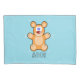 Um monograma delicioso mostrando um ursinho marrom giro em cima de um fundo azul suave, criando um toque quente e personalizado.