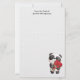 Papel de papelaria com um desenho de aquarela adorável. Um adorável urso panda preto e branco carregando um buquê de rosas.