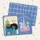 Um cartão azul encantador de Natal com espaço para uma foto de família, bem como uma ilustração fofa de dois ursos polares que decoram uma árvore de Natal na frente. A parte de trás tem um padrão de grade azul e branco pintado manualmente. Personalize o cartão com sua foto, texto e nome da família usando os campos de modelo fornecidos. © ArianeC Ilustrações — Todos os direitos reservados