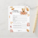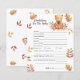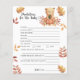 Celebrar com esta festa de chá de fraldas do ursinho de outono! Ursinho de pelúcia bonitinho com uma abóbora de outono nas patas do outono. No verso do cartão estão as folhas do outono. Itens correspondentes disponíveis.